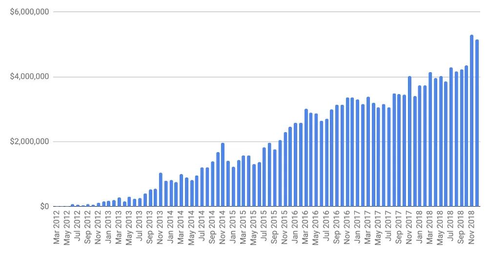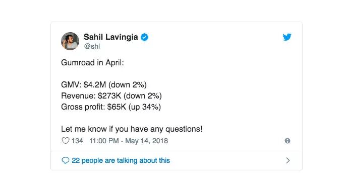 但是,因为我们不再是这些创业公司中的一员,所以更容易分享这些信息。我们是盈利的,一个没有实现增长的月份不会改变这一点。所以在2018年4月,我开始公开我们的月度财务数据: