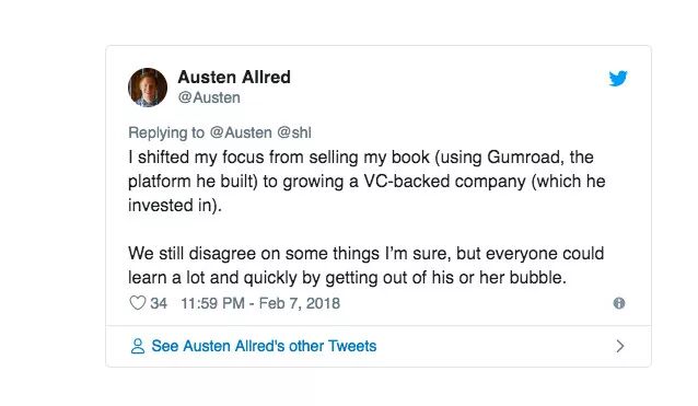 例如,奥斯丁·奥尔雷德为他的创业公司Lambda School筹集了4800万美元,奥尔雷德最开始是靠在Gumroad上卖书启动创业项目的。