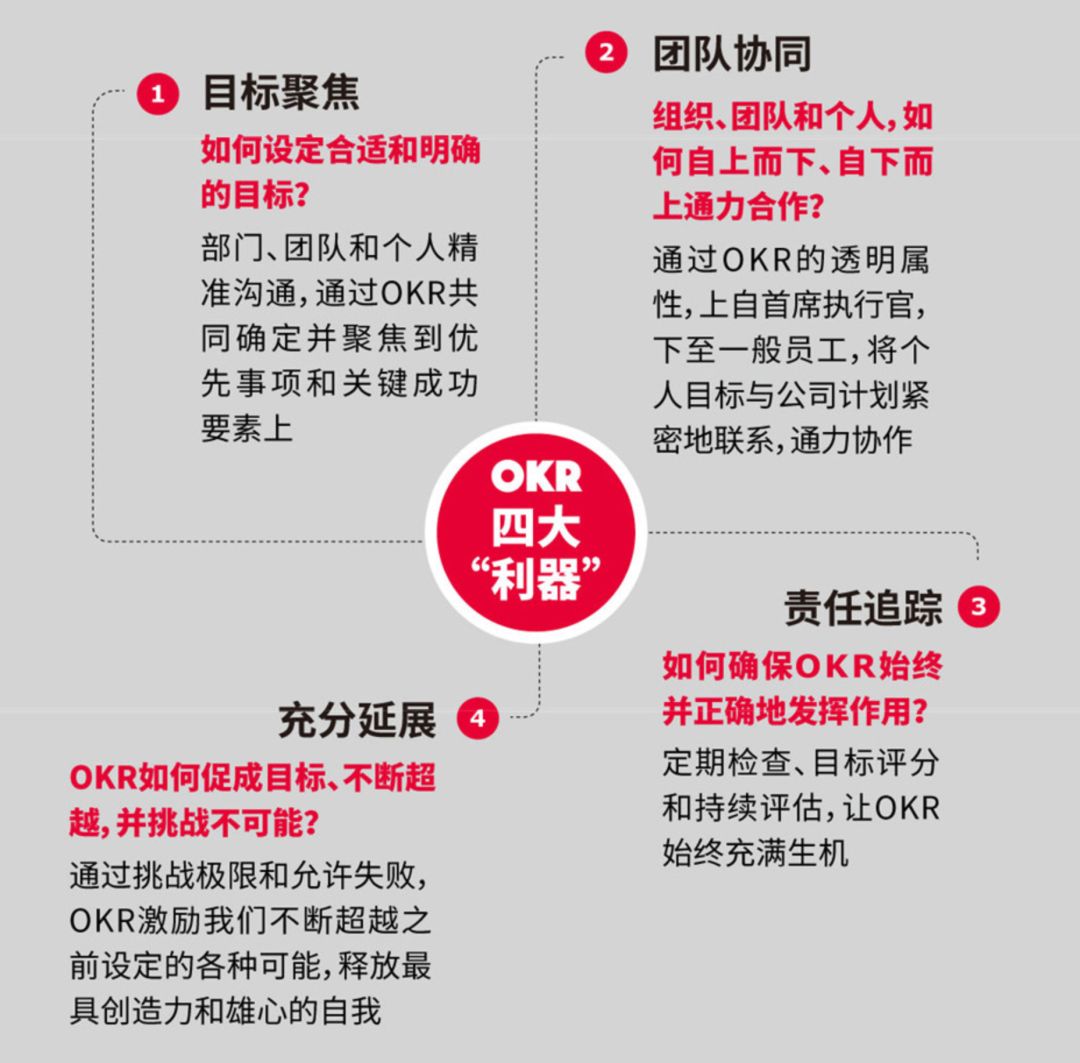 OKR有四大“利器”:聚焦、协同、追踪和延展。