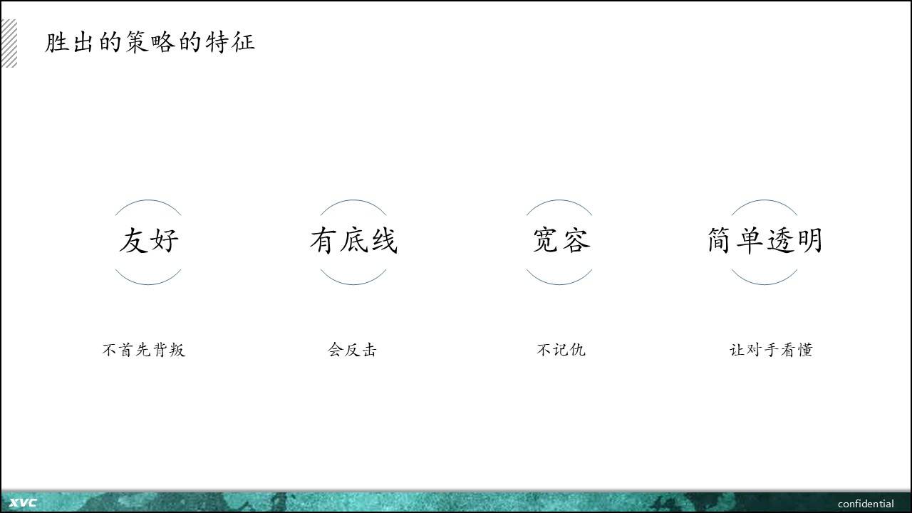 为什么?阿克塞尔罗德总结出了四个关键特性,这四点加在一起,让它在长期演化中非常强。