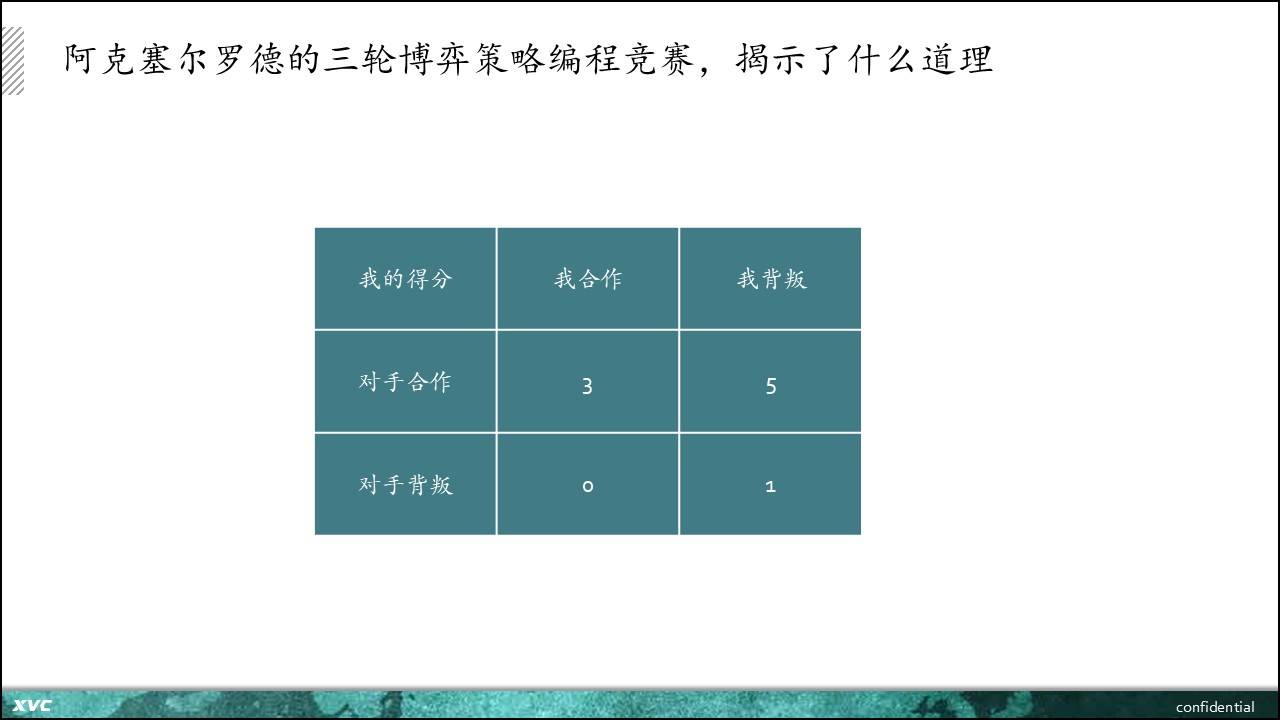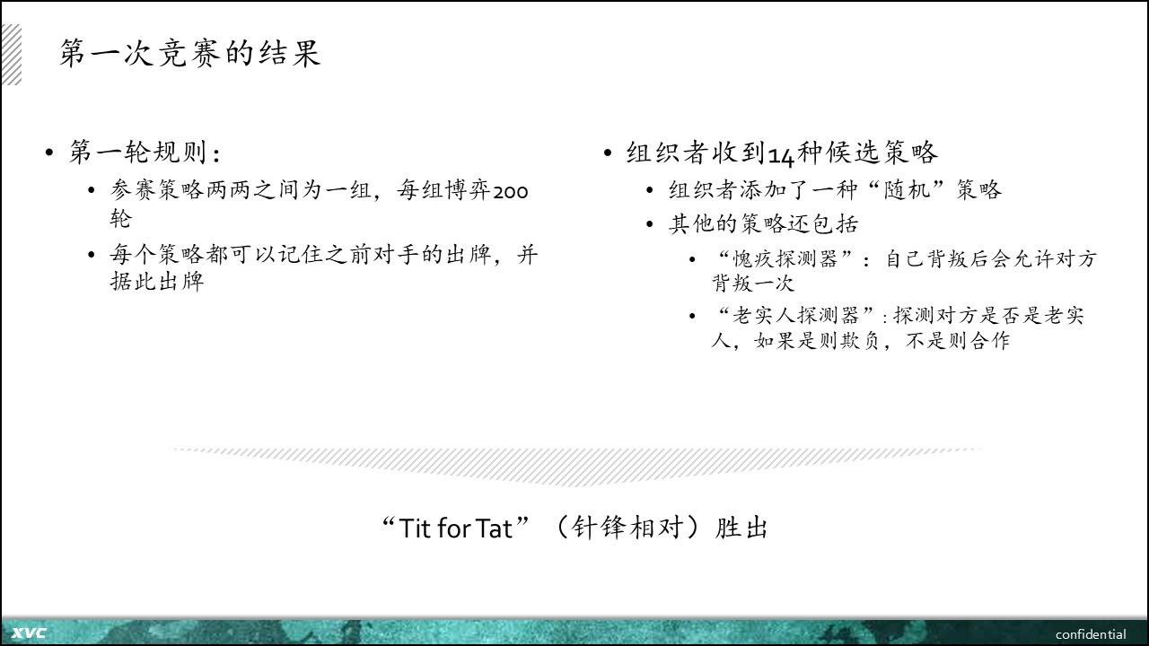 所有人一看就懂——“我怎么对你,你就怎么对我”。透明的策略能减少误会,也让对手更容易做出合作决策。这四点加在一起,使得“针锋相对”成为一种非常强的进化策略:既友好,又有底线;既能合作,又不会被利用;既不会过度惩罚,也不容易被误伤影响。